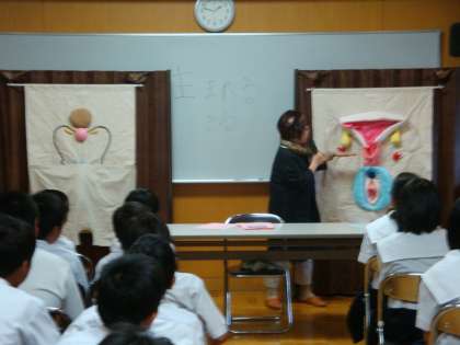 昨日、9月19日(金)5限目に1年生の『性教育講話』を大阪府助産師会からゲストティーチャーの方を招いて行いました。模型?を使っての男女のからだの違いや「生まれる」って素晴らしいことだという命の大切さについて1時間お話をしていただきました。「へぇ、そうやったんや!」と驚き・納得する声も聞こえ、新しいことを学べた時間となりました。