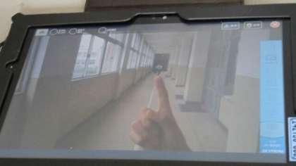 6月7日(金)3限の1年生美術の授業風景です。「遠近法〜新鮮な視点でとらえよう〜」という単元でタブレットのカメラ機能を使って校内のいろんな場所で写真を撮りました。3枚目の写真では、人差し指の先に人が乗っているように見えます。