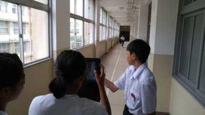 あいにくの雨のため、どの班も屋内での撮影となりましたが、2枚目、掃除機を使った写真は、周りにモザイクをかけると3枚目のような写真になります。タイトルは「ああああああああああああああ」です。
