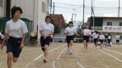 予行なので笑顔のスタートですね。このレースは、3年生がダントツでした。