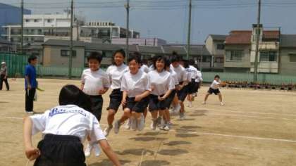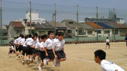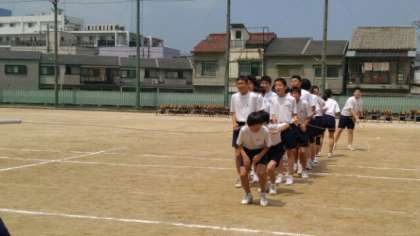 大縄跳びです。写真は、1−1、1−2、2−1の様子です。人数×回数が得点になります。各クラス、これまでの練習の成果を出せるかどうかです。
