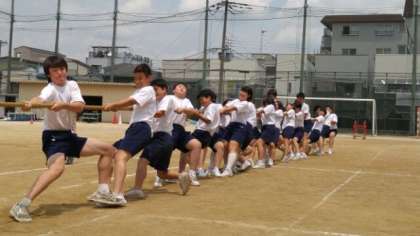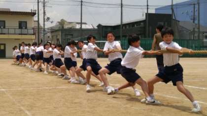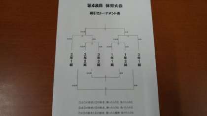 1年生は、一泊移住で綱引きの必勝法を学んできました。人数的にはどのクラスも同じくらいになると思われるのでやはり上級生が有利です。はたして1年生は奇跡を起こすのか?
