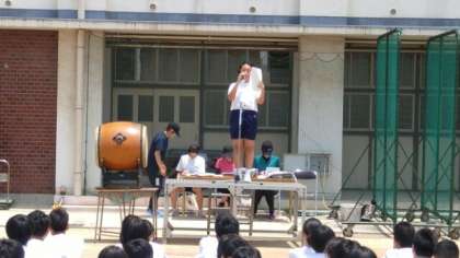 閉会式の様子です。仮の結果発表の結果、仮の優勝は3−2でした。最後の写真は3−2の優勝の喜びの予行です。あさっても喜べたらいいですね。