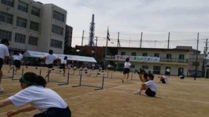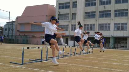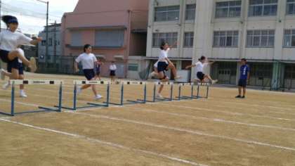 女子50mハードルの様子です。スピードとハードルをタイミングよく跳び越える器用さが求められます。