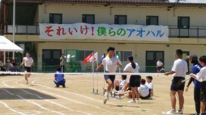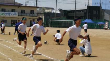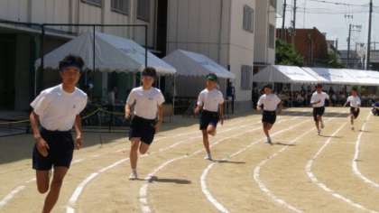 男子400m走の第2レースです。3年生2名がダントツの1位2位です。