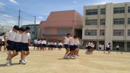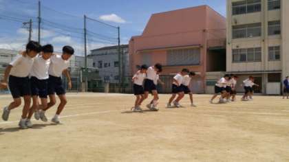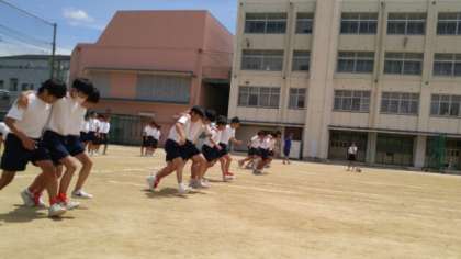続いて男子3人4脚です。息がうまく合ってスイスイ進むクラスもあれば、リズムが狂ってなかなか前に進まないクラスもあります。