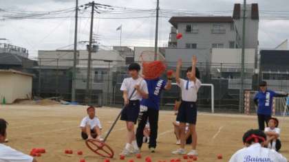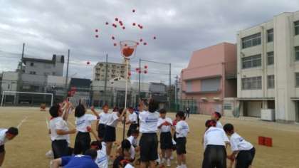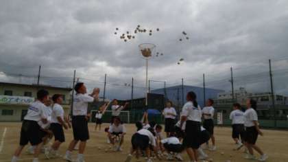 学年対抗の玉入れです。1−1が勝ちました!