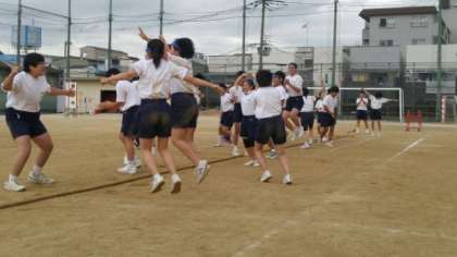 フリーの抽選により、1回戦は2−2対3−2の戦いです。熱戦の末、3−2が勝ちました。跳びあがって喜んでいます。