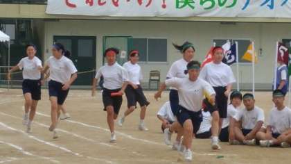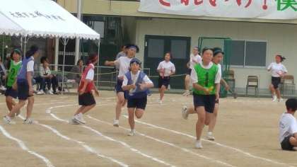 第3走者へのバトンパスの続きと、アンカーへのバトンパスの様子です。3年生が最後まで迫りましたが、逆転にはいたらず。2年生が逃げ切ったレースとなりました。