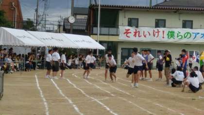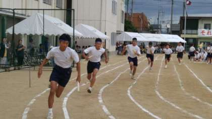 写真2枚目の時点では、3−1がリード、3−2が続く展開です。しかし、写真3枚目、第3走者へのバトンパスでタイミングが合いませんでした。