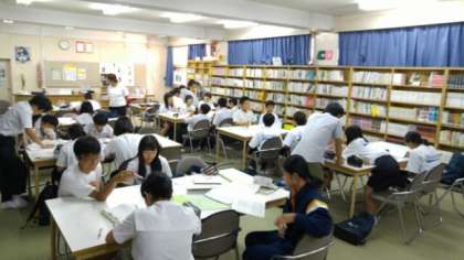 複数の学習ボランティアの方に来ていただいていますが、写真のように大盛況となりました。図書室には回転書架も新調、「調べ学習」コーナーもあります。ぜひこれからも大いに「サタデイワーク」を、図書室を活用してください!