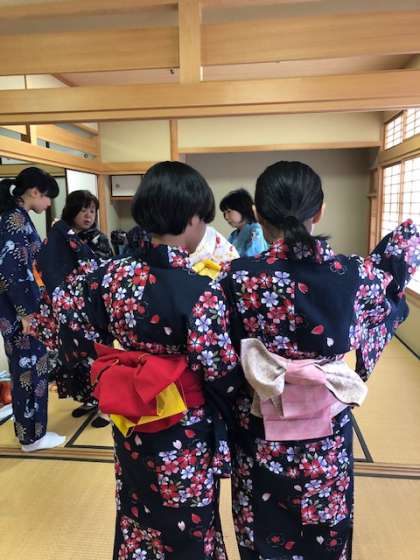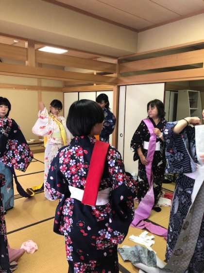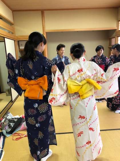 7月10日(水)放課後、本校和室にて「ゆかた着付け講座」を開催しました。これは、学校元気アップ本部事業の一環で、希望生徒を募り実施したものです。女子生徒4名が参加しました。また、地域から3名のボランティアの方にお越しいただきました。