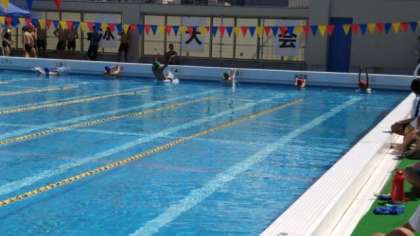 男子25m背泳ぎ第2レースの様子です。2年生が1着でした。