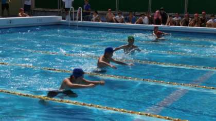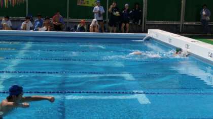 続いて、男子25mウォーキング第1レースの様子です。2年生が大差をつけて1着でゴールしました。