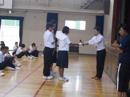 8時25分の部優勝は3年1組、8時30分の部優勝は1年2組でした。