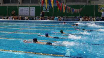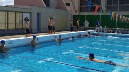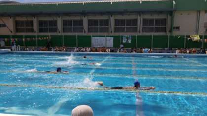 男子100mビート板リレーの様子です。第1泳者は1−1、3−2と続きました。第2泳者も同様、1年生が速いです。