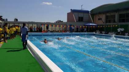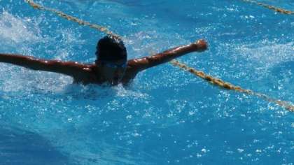 まずは、バタフライ。25mでターンし50m!泳ぎます。まだあと150mも残っています。相当きつい種目だと思います。
