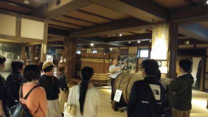 館のテーマは、「酒造りの原点を知ること」で、国の重要有形民俗文化財に指定された酒造資料566点をはじめとする資料が展示されており、酒造りの過程から用具類に至るまでの知識や現物とふれあうことができました。