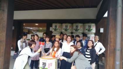 9月21日(土)、梅南津守小学校、松之宮小学校と本校の3校合同によるPTA社会見学会を実施しました。まず、神戸市東灘区にある「菊正宗酒造記念館」を見学しました。