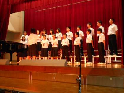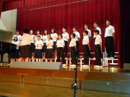 プログラム1番、1年生による合唱です。クラス合唱のあと学年全員による合唱を行います。