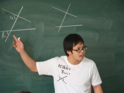 11月4日(火)の6限目、2年1組で大阪市新任教員研修会の数学科の公開授業を実施します。本日は、教育センターから2名の指導主事先生をお招きして、公開授業に向けた事前の指導や打合せを行いました。写真は、今日1限目の2年1組の授業の様子です!川人先生のTシャツには「対頂角は等しい」と書かれるなど、ユニークな方法で子どもたちを授業に引き付けています。