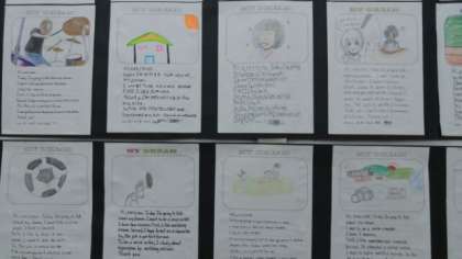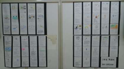 2年生英語科「My Dream(私の夢)」(写真1枚目の右半分と左下。左上は3年生「3Graders School Trip(修学旅行)」)です。