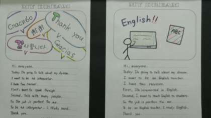 「interpreter(通訳)」「English teacher(英語の先生)」「professional drummer(プロのドラマー)」「soccer player(サッカー選手)」などの夢が紹介されていました。