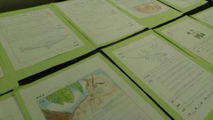 2年生理科「動物の調べ学習」です。「ジャンガリアンハムスター」「ニホンザル」「タイガーキャット」「アオミノウミウシ」などの紹介がありました。