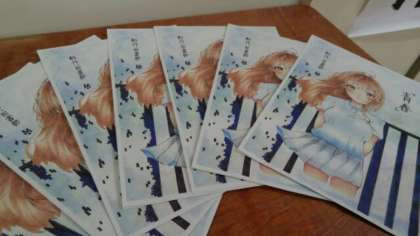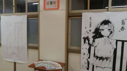 続いて3年生C−1教室です。図書部の小説「青春」です。きれいなイラストですね。
