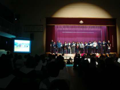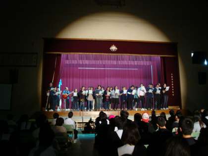写真は、PTAコーラスの様子です。「キセキ」と「未来へ」を子どもたちに心を込めて歌いました。