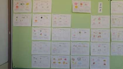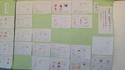 2年生家庭科「和菓子デザイン」です。四季と誕生月の和菓子をデザインして、その中から1つ作りました。