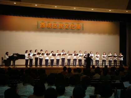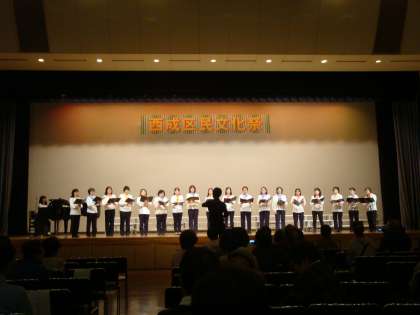 写真は、本校PTAと天下茶屋中学校PTAが合同で行ったコーラスの様子です。1曲目は、松任谷由美さんの「やさしさに包まれたなら」、2曲目は、中島みゆきさんの名曲「糸」を演奏しました。素晴らしい歌声であり、動画でお届けできないのが残念です。区民文化祭のコーラス発表会の取りでありましたので、最後は会場の皆さんと一緒に「ふるさと」を大合唱して終わりました。
