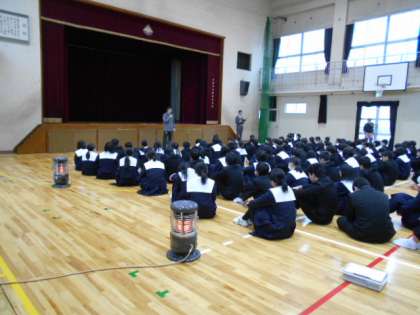 新しい年を迎え、3学期始業式を行いました。あいにくの天気でしたが元気に登校する姿を見ることができて安心しました。今日のお話にもありましたが3学期は学年の終わりでもあり、新学年への準備期間でもあります。明後日には1,2年生はチャレンジテスト、3年生は実力テストがあります。体調を崩しやすい季節ですが体調管理をしっかりとして、今年度の締めくくりである3学期も頑張っていきましょう。