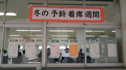 始業式で生徒会から予告があったとおり、昨日から「冬の予鈴着席週間」が始まっています。これは、これまでの「絶対に遅れてはいけない1週間」をバージョンアップし、本鈴(8時30分)ではなく、予鈴(8時25分)のみの着席コンクールを行うものです。期間は、16日(木)まで。表彰も予定していますので生徒の皆さんは、年の初め、特に頑張ってください。生徒会では、まもなく「ベルマーク回収(アンケート集約後連絡)」にも取り組み始めます。
