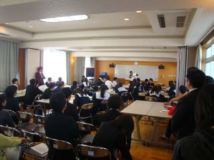 本日6限目に本校数学科若手教員による公開授業が、大阪市の数学科新任教員を対象に行われました。他校から多くの先生方が授業見学に来られ、また教育センターからも担当の指導主事先生や教育指導員の方々が参加されたこともあり、やや緊張気味の授業でありましたが、いつもの明るさと大きな声で堂々とした授業でありました。写真右は、授業後の研究協議の様子です。
