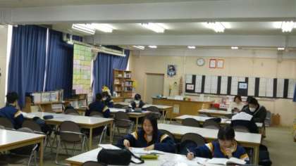 今日は、本校1,2年生の希望者11名が8:45分に集合し、教室で英語科先生の監督のもと「実用英語技能検定(英検)」にチャレンジしています。