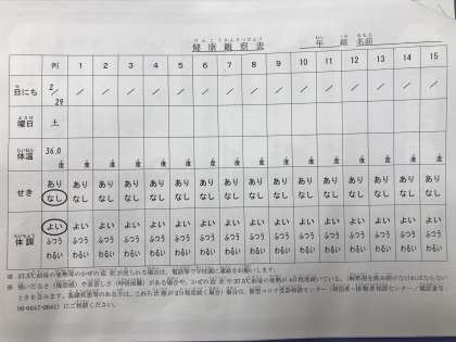 健康観察表です。
