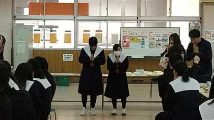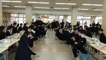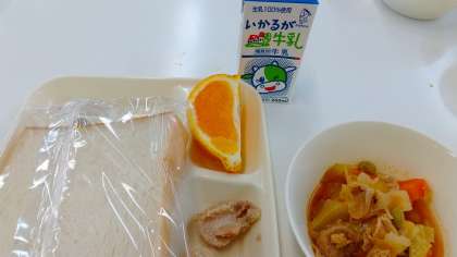 2月28日(金)、3年生にとって最後の給食となりました。メニューはパン、牛乳、鶏肉のガーリック風味焼き、豚肉と野菜のケチャップ煮 デコポン、ソフトマーガリンです。