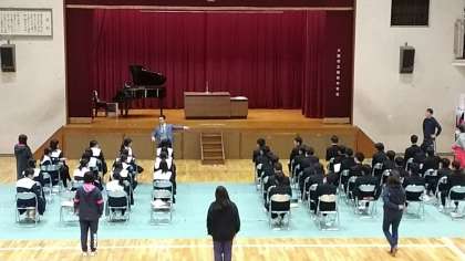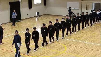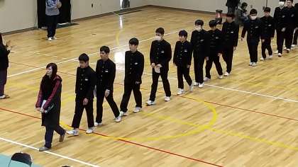 動きの説明の後、通して練習しました。1組入場、そして2組入場の様子です。とにかく初めての練習が予行のようなものなので手探りの状態のスタートです。
