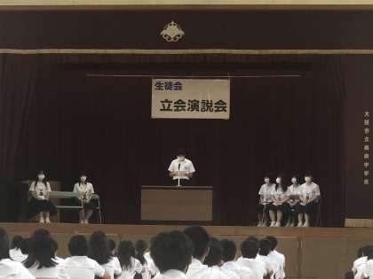6月25日(木)、前期生徒会役員選挙「立会演説会」を体育館で行いました。