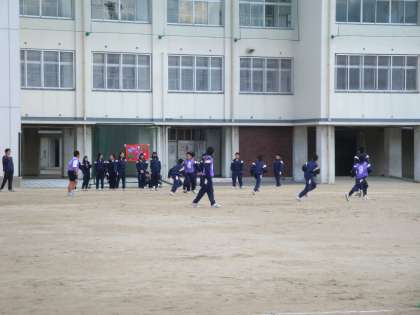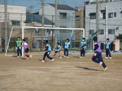 本日、午後から1年生の球技大会を行いました。寒さがたいへん厳しい中ででしたが、子どもたちは元気いっぱいにサッカーの試合に臨みました。左の写真は男子の試合の様子で、女子が必死で応援をしていました。以下に本日行われた球技大会の様子をアップしますので、どうぞご覧ください。
