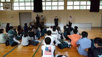 退村式の様子です、わずか1日足らずの体験でしたがありがとうございました。最後にお世話になった民家の方と記念撮影をしました。