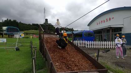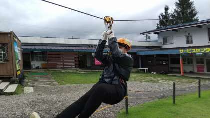 みんなこちらは、ちょっと怖かったのではないでしょうか?この後、バスで更に高原にもっと長い距離を楽しみます。ただ、この辺りから雨が降ってきました。カッパは着用していますがちょっと残念です。