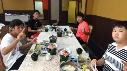 夕食です。最後の夕食なのでみんなの様子を紹介させていただきます。