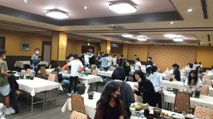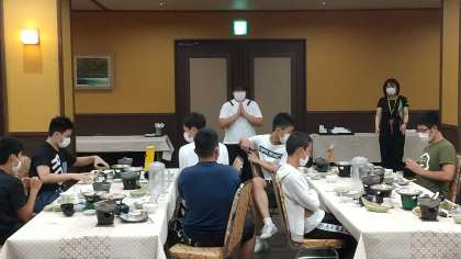 夕食が終わりました、テキパキ後片付け。この後レクリエーションが始まります。