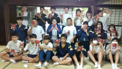 少し早く終わった2組は、中でクラス写真を撮りました。
