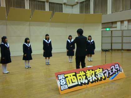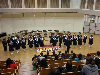 左の写真は、音楽部の発表の様子です。右の写真は、プログラムの取りを梅南・今宮・成南中学校の吹奏楽部・音楽部による合唱でしめくくった様子です!会場の皆さんから大きな拍手が送られました。「感動の合唱でした。ごくろうさま!」