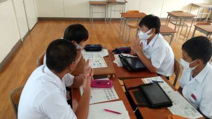 2つの教室と学習室、パソコン教室に分かれ、タブレット等を使いながらまとめていきました。
