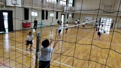 4チームに分かれ、アタック練習等のあと、試合を行いました。強力なサーブも繰り出されています。