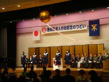 『西成区成人式』の様子です!(音楽部がお祝いの歌を歌いました)